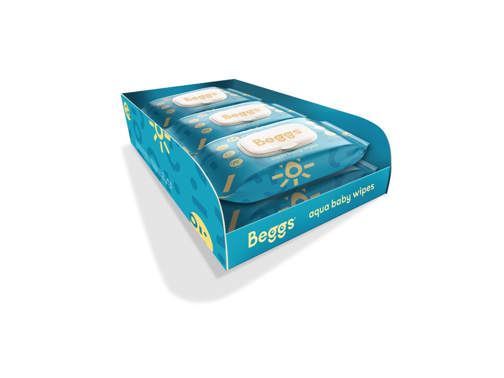 Aby zapobiec wysychaniu chusteczek opakowanie wyposażone jest w praktyczne, zamykane wieczko. Opakowanie zawiera 64 sztuki chusteczek, co jest ilością zużywaną przez większość mam w ciągu jednego do dwóch tygodni. To czas, w którym otwarte opakowanie chusteczek nie zdąży wyschnąć.