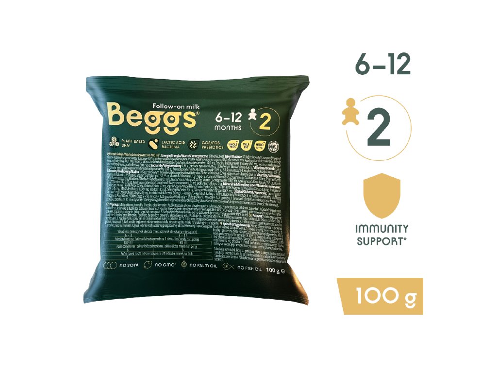 Ważne uwagi: karmienie piersią to najlepszy sposób odżywiania dziecka. Beggs 2 przeznaczone jest wyłącznie dla niemowląt powyżej 6 miesiąca życia, powinno stanowić jedynie część zróżnicowanej diety i nie powinno być stosowane jako zamiennik mleka matki w ciągu pierwszych 6 miesięcy życia dziecka. Decyzja o rozpoczęciu podawania pokarmu, w tym wszelkie wyjątki od reguły ukończonego 6 miesiąca życia, powinna być podjęta wyłącznie za radą niezależnych osób wykwalifikowanych w dziedzinie medycyny, żywienia, farmacji lub innych specjalistów odpowiedzialnych za opiekę nad matką i dzieckiem, w zależności od wzrostu i potrzeb rozwojowych danego niemowlęcia. Dbaj o higienę jamy ustnej niemowlęcia. Mając na względzie zdrowie dziecka przestrzegaj sposobu przygotowania i przechowywania.