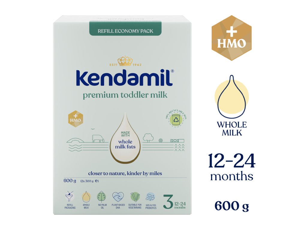 Ważna uwaga: Karmienie piersią to najlepszy sposób żywienia Twojego dziecka. KENDAMIL PREMIUM 3 HMO+ jest przeznaczone do żywienia małych dzieci od ukończonego 12 miesiąca życia i powinno stanowić jedynie część zróżnicowanej i zbilansowanej diety małego dziecka. Podczas karmienia z butelki należy unikać niepotrzebnego przedłużania kontaktu smoczka z ząbkami, gdyż zwiększa to ryzyko wystąpienia próchnicy. Dbaj o higienę jamy ustnej dziecka, zwłaszcza przed snem. Przestrzegaj sposobu użytkowania dotyczącego przygotowania, karmienia i przechowywania, w przeciwnym razie zagrozisz zdrowiu dziecka. Nie jest przeznaczony dla dzieci do 12 miesiąca życia.