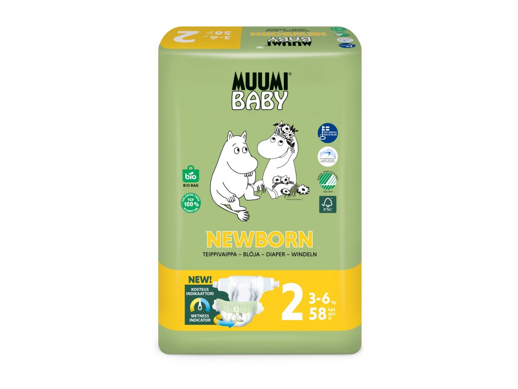 Muumi Baby 2 Newborn 3–6 kg (58 szt), eko pieluszki